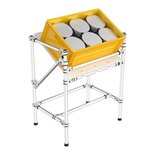 Productos estándar que no pueden modificarse a corto plazo. Más de 600 productos para logística y producción. Montados en origen y listos para usar en 11 días laborables. Nuestros productos estándar también sirven para establecer proyectos personalizados. Acabado a elegir entre acero o aluminio. Pedido mediante archivo PDF con cálculo optimizado del precio del transporte a petición, según la dirección de destino.