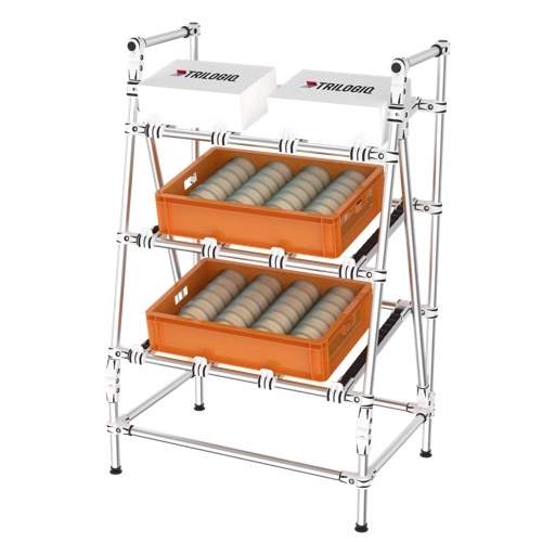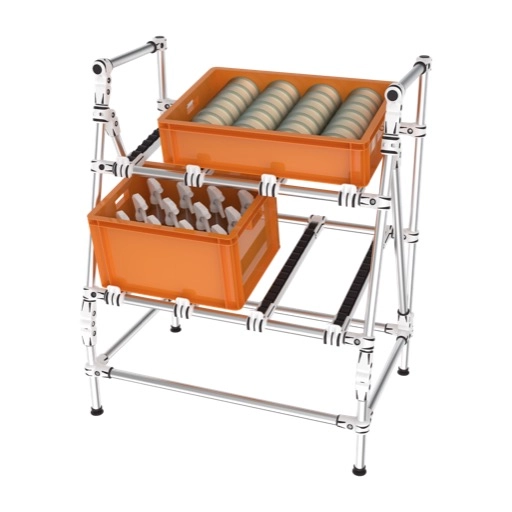 Productos estándar que no pueden modificarse a corto plazo. Más de 600 productos para logística y producción. Montados en origen y listos para usar en 11 días laborables. Nuestros productos estándar también sirven para establecer proyectos personalizados. Acabado a elegir entre acero o aluminio. Pedido mediante archivo PDF con cálculo optimizado del precio del transporte a petición, según la dirección de destino.